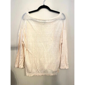 J. Crew | Women's Light Peach Pink 100% Linen Pom Pom Trim Sweater Medium