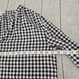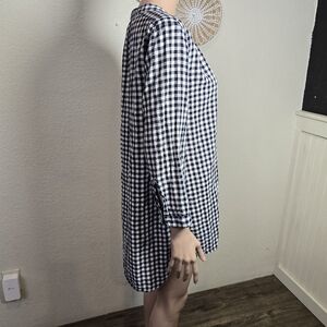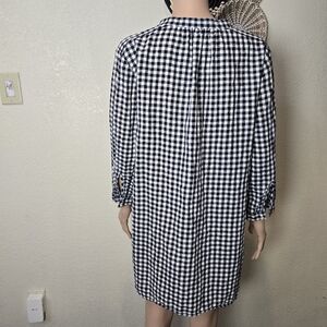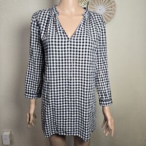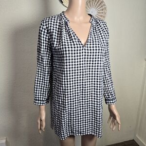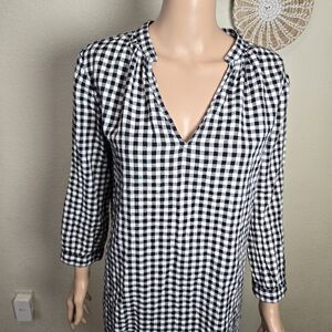 J. Crew Womens Linen Cotton Navy White Check Tunic Shirt Sz S Preppy 3/4 Sleeve