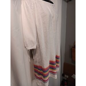 J. Crew Womens Linen Cotton Y2k White Rainbow Striped Dress Off Shoulder Boho