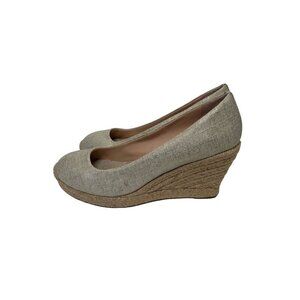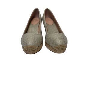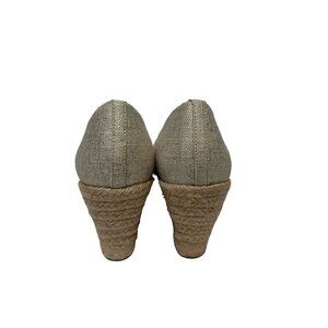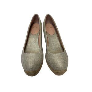 J. Crew Women's Linen Metallic Gold Beige Wedge Slip On Round Toe Espadrilles 8