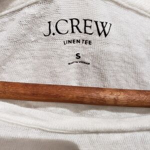 This is a perfect summer staple, a J.Crew Women's Linen Tee featuring a stylish blue striped pattern. This short-sleeve shirt has fashionable Rolled Sleeves and is crafted from light, breathable 100% Linen, making it ideal for warm weather.