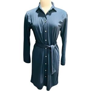 J. Crew Womens Long Sleeve Button Down Easy Knit Shirt Dress Navy Medium Size M