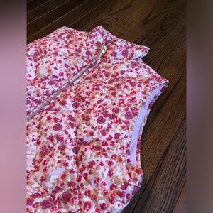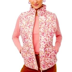 J. Crew Women’s M Pink/Purple Floral Full-Zip Puffer Vest w/Pockets - EUC!