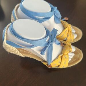 J. Crew Womens Marianne Espadrilles Tie Wedges Yellow Light Blue Spa Whales Sz 8