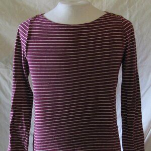 J. Crew Women's Maroon/White Stripe Painter Tee Size Large 100% Cotton EUC