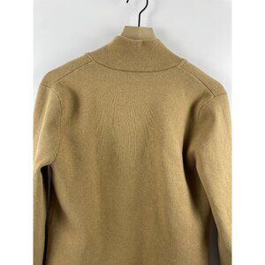 Description : 100% cotton knit. 2 button front. Notch lapel / collar. Long sleeve. Welt pockets on hips. Neutral tan / camel color.