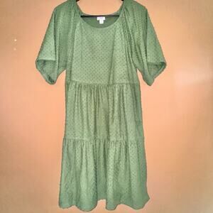 J. Crew Women's Midi Clip Dot Tiered Olive Green Dress - Small