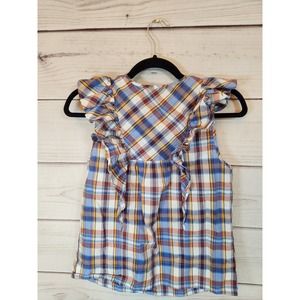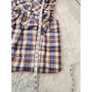 J. Crew Women's Multicolor Plaid Crew Neck Ruffle Sleeveless Blouse Top Size 2
