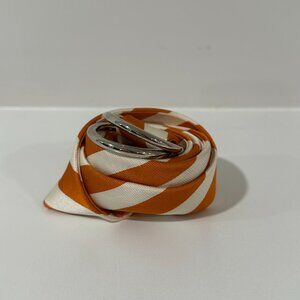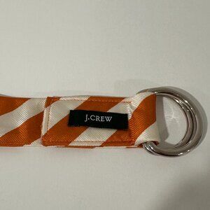 J Crew Women's Orange White Striped Silk D-Ring Buckle Belt Size Medium / Large