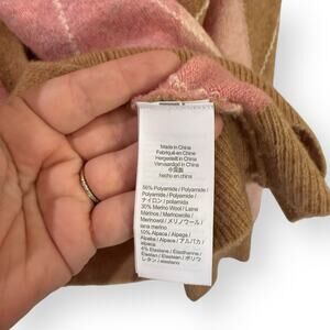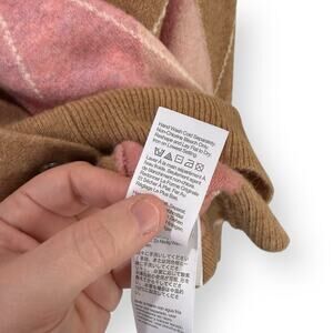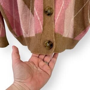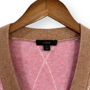 J Crew Womens Oversize Cardigan Sweater L Argyle Supersoft Wool Alpaca Pink Tan