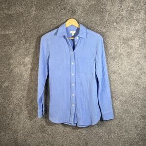 J. Crew Womens P2XS Blue Cotton Shirt Long Sleeve Button Front Casual Top