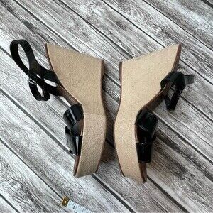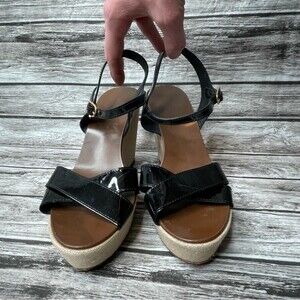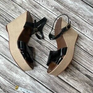 J. Crew Womens Patent Leather Canvas Wedge Sandals 7 Beige Black Made in Italy