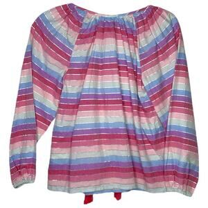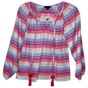 J. Crew Women's Peasant Top Metallic Pastel Striped Tassel NWOT Boho