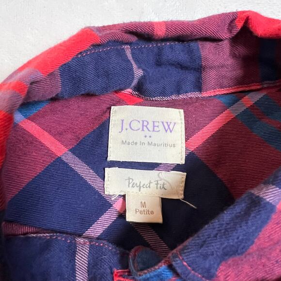J. Crew Women's Perfect Fit Plaid Button Up Shirt Size Medium Petite Colorful