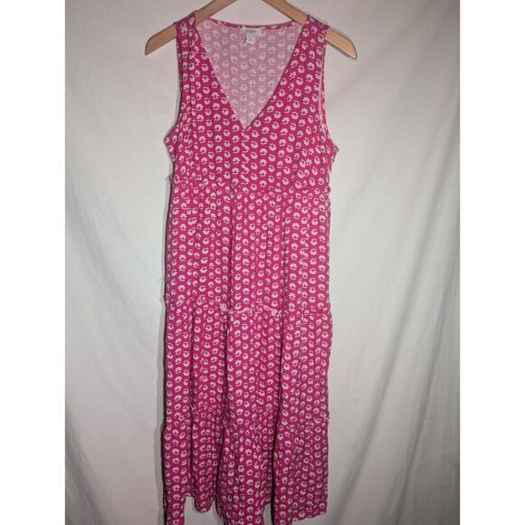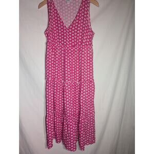 J. Crew Women's Pink Floral Print Tiered Maxi Swing Dress Size 6 V neck ruffle