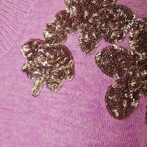 J. Crew Womens Pink Gold Sequined Merino Wool Sweater M Floral Boxy