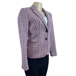 J. Crew Womens Pink Houndstooth Blazer Wool Blend XS China New