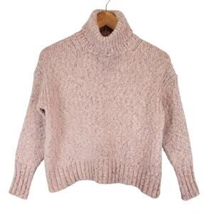 J. Crew Women's Pink Marled Speckled Wool Turtleneck Cropped Sweater Size XS