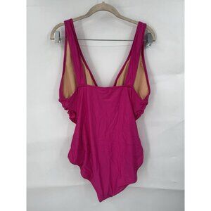 J. Crew Women's Pink Ruched V-Neck One-Piece Swimsuit Size 18 Poolside NEW