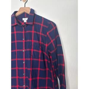 J. Crew Womens Plaid Flannel Button Down Top Shirt Size Small Navy Blue Red