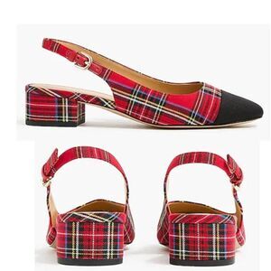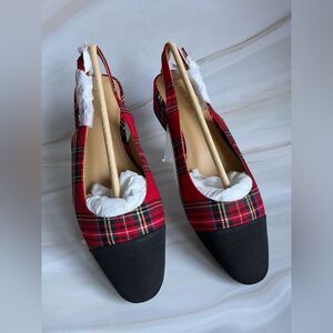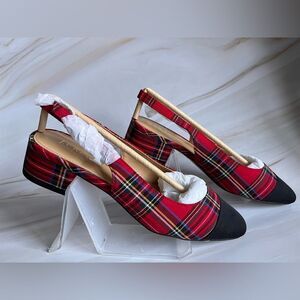 J. Crew Women's Plaid Flat Shoes Slingback Pointed Toe Party Red