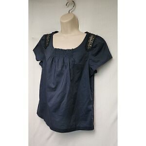 J Crew Womens Pleated Front Short Sleeve Lace Shirt/Blouse Size Small Blue