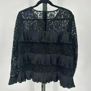 J. Crew Womens Pleated Lace Ruffle Blouse Size 16T Black Dressy Formal Party