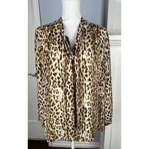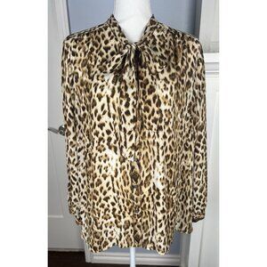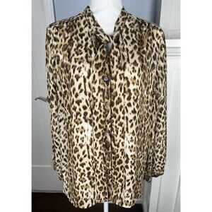 J Crew Womens Plus 3X Leopard Print Long Sleeve Tie Collar Blouse Brown
