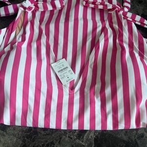 J Crew Women's Plus Size Striped Tie-Shoulder Pink Swimsuit Size 2XL