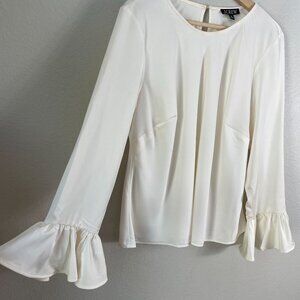 J Crew Womens Plus XXL Ruffled Cuff Blouse Ivory Long Sleeve Satin Top