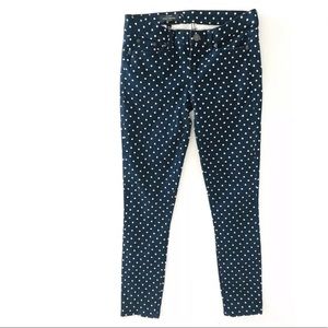 J Crew Womens Size 25 Blue Polka Dot Toothpick Jeans Cotton Low Rise Pants
