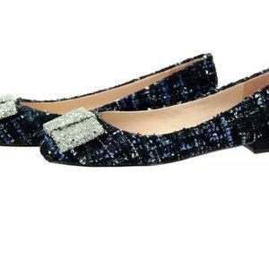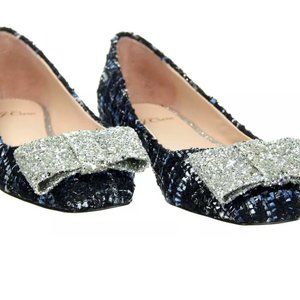 J Crew Women's Poppy Ballet Flats in tweed with glitter bow in Ocean Black. Available in shoe size 8.5 (Model #J8237)