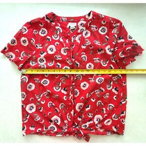 J Crew Womens Prairie Top Medium Tie Front Button Up Shirt Peasant Bloomcore