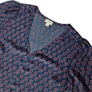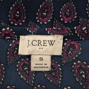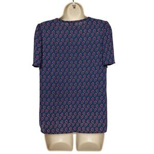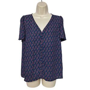 J Crew Womens Printed V Neck Top Size Small Blue Pink Geometric Short Sleeve