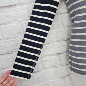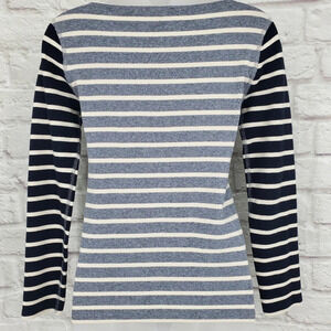 Details: Pullover Sweater Gray White Black Stripe Long Sleeve Sweater,