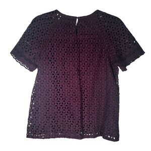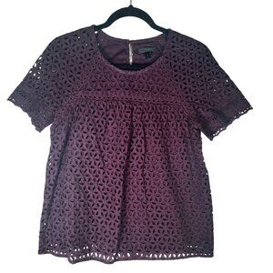 J. Crew Womens Purple Eyelet Short Sleeve Blouse