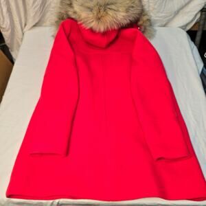 J. Crew Women's Red Chateau Stadium Parka Coat Nello Cori Faux Fur Hood Size 10