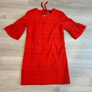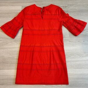 J Crew Women’s Red Flutter Sleeve Eyelet Shift Cotton Dress - 4