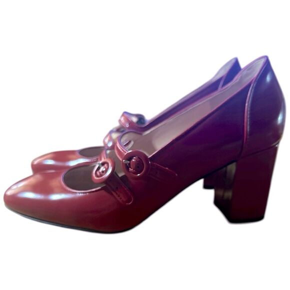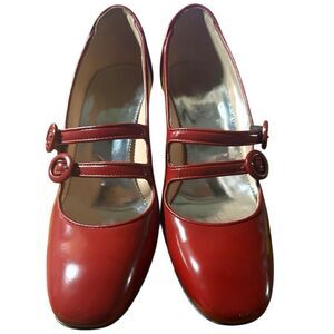 J. Crew Women's Red Mary Jane Heels With Block Patent Leather Heel Size 7.5