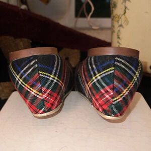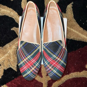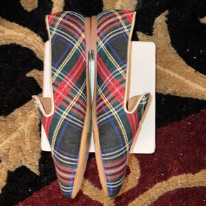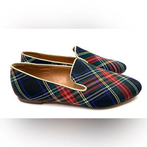 J. Crew Women’s Red Navy Blue Tartan Leather Lined Flats Slippers Shoes Size 8.5