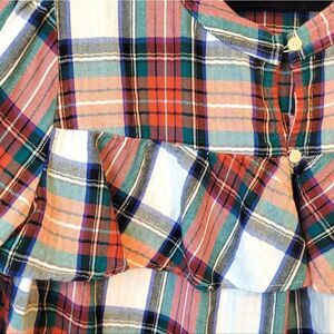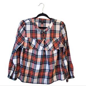 J. Crew Women's Red & White Holiday Plaid Ruffle Blouse Size L