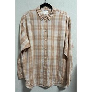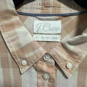 J. Crew Women's Relaxed Featherweight Flannel Button Shirt Plaid Peach Size 14