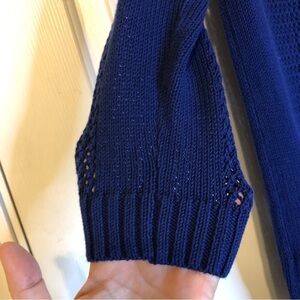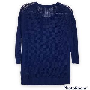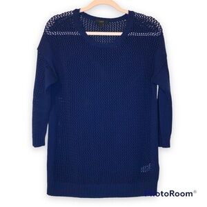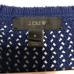 J Crew Womens Royal Blue Drape Beach Crew Neck Open Knit Sweater Size Small