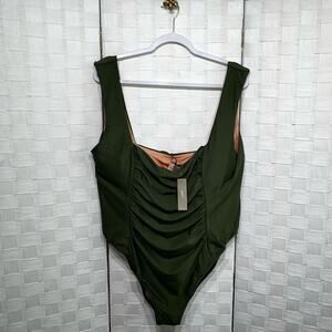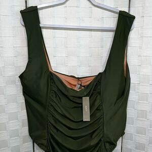 J. Crew Women’s Ruched Square Neck One Piece Swimsuit Safari Green Plus Size 24