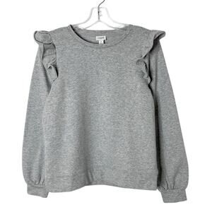 J. Crew Women's Ruffle-Shoulder Sweatshirt S Gray Foil Glitter Long Sleeve BL256