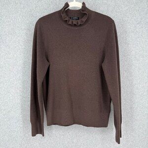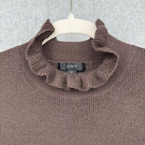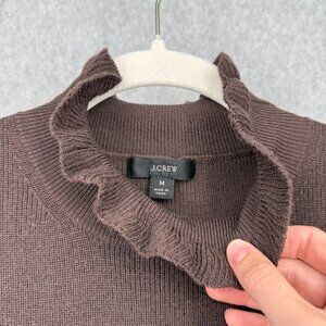 J Crew Womens Ruffleneck Merino Wool Blend Sweater Size M Brown Knit Classic Style: BJ571