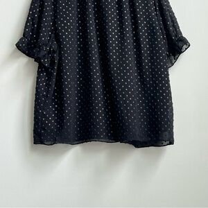 J Crew Womens Ruffleneck top with foil clip dot Black Gold XXL Polkadot Preppy