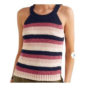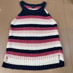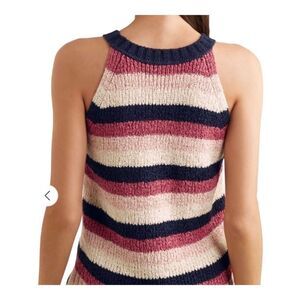 J. Crew Women’s S Cotton Blend Knit Striped Sleeveless Sweater Tank Pink Navy