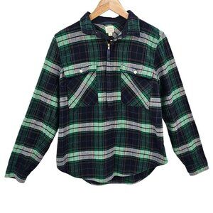 J Crew Half Zip Buffalo Plaid Popover Shirt Jacket Blue Green