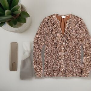 J. Crew Women's SET 2 piec brown Polka Dot Up Ruffle Blouse and skirt SZ XS